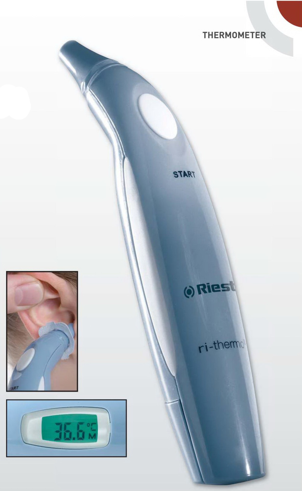 | เทอร์โมมิเตอร์ Riester รุ่น Ri Thermo N ของเยอรมัน เป็นแบบอินฟาเรค สามารถใช้วัดทางหู และส่วนอื่นๆ ของร่ายกายได้ |