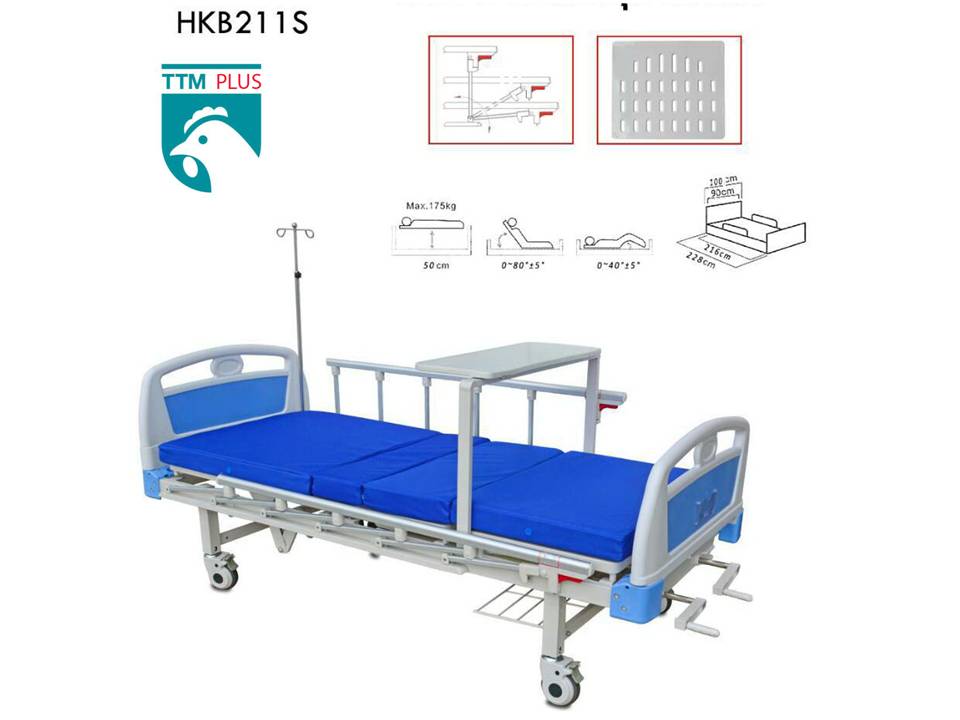 | เตียง 2 ไกร์ มือหมุน+ที่นอน 4 พับ+ที่วางอาหาร+เสาน้ำเกลือ+ที่วางของใต้เตียง รุ่น HKB211S |